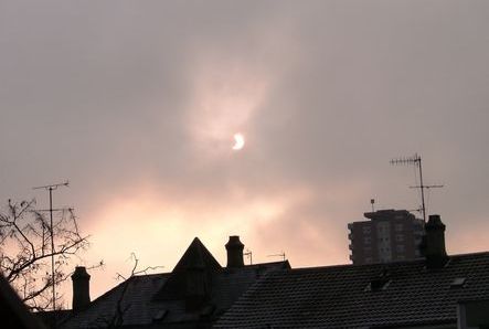 Eklipsi i pjesshëm i diellit, ose zënia e tij, që ishte paralajmëruar për mëngjesin e ditës së sotme, ka mundur të shihet vetëm pjesërisht dhe në vendet me lartësi më të madhe. Pamjen e qartë të eklipsit në pjesën më të madhe të Zvicrës e kanë penguar retë dhe mjegulla e dendur që ka karakterizuar ditën e sotme.