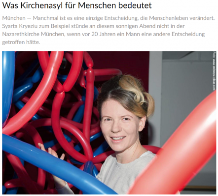 Tre artistë u janë qasur këtyre personave: një shkrimtare, një artist i fotografisë, i cili njëkohësisht është edhe aktor dhe një grua e re me rrënjë kosovare, e cila si fëmijë kishte gjetur strehë në një kishë të Munihut dhe arushin prej pelushi (Tedddybär) të dhuruar atëbotë e ruan edhe sot, shkruan merkur.de. Ata shtrojnë pyetje dhe pranojnë pyetje të shtruara, dëgjojnë rrëfime dhe rrëfejnë rrëfime. Ata/ato kërkojnë gjësende që kujtojnë kohën e strehimit në kishë: kujtime, fjalë, rekuizita, fotografi, shkresa, sekuenca filmi…