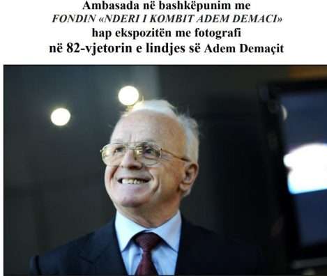 Ambasada e Kosovës në Bernë në bashkëveprim me Fondin “Adem Demaçi, nderi i kombit”, në 82 vjetorin e lindjes së Adem Demaçit hap në ambientet e Ambasadës një ekspozitë me fotografi të Demaçit.