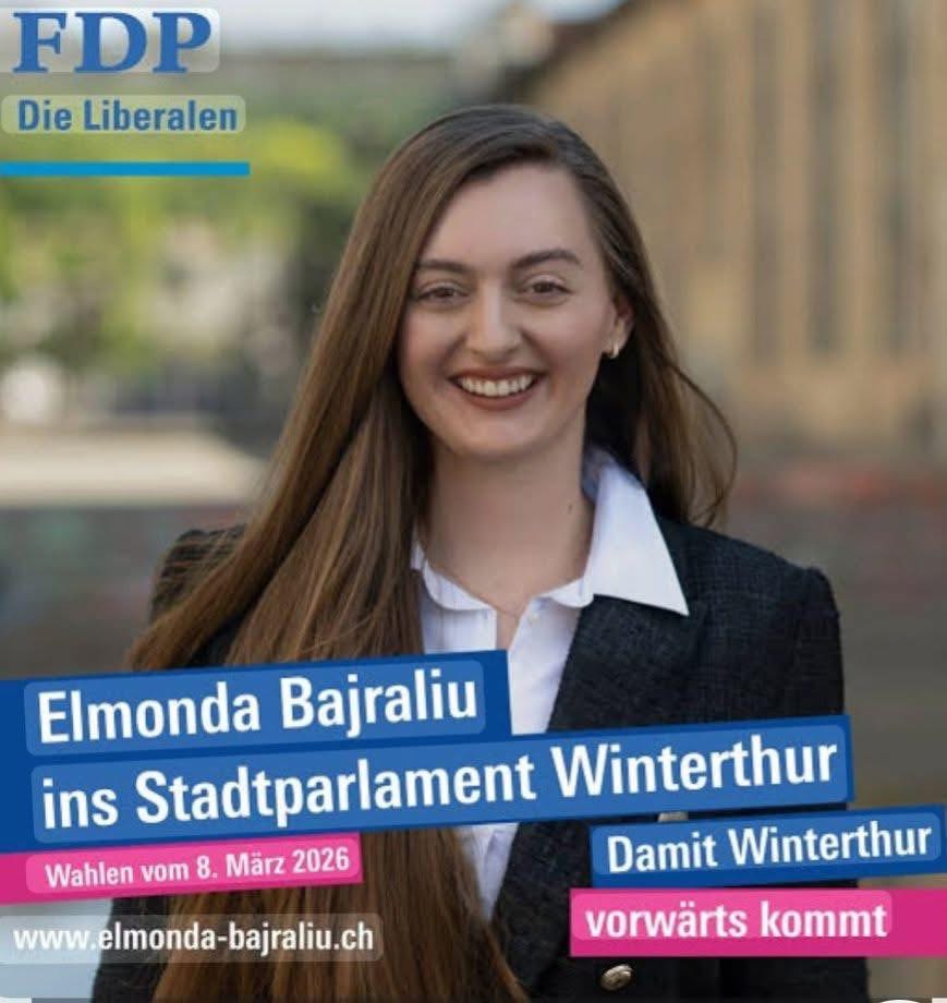 Një tjetër emër shqiptar po shënon sukses në politikën zvicerane. Elmonda Bajraliu, shtetase zvicerane me prejardhje nga Kosova, do të jetë kandidate në zgjedhjet komunale të 8 marsit 2026 për Parlamentin e qytetit të Winterthur-it, nën siglën e FDP.Die Liberalen, transmeton albinfo.ch.
