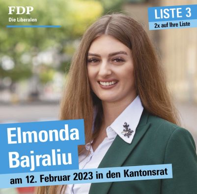 Në vitin 2017, engage.ch lansoi fushatën “Ndrysho Zvicrën”. Të rinjtë nga gjithë Zvicra mund të paraqesin një kërkesë/ide për të ndryshuar Zvicrën. Kam hasur në këtë projekt dhe kam bërë një kërkesë. Janë dorëzuar mbi 700 kërkesa dhe 12 prej tyre janë përzgjedhur nga politikanët. Më ftuan në ndërtesën e Parlamentit në Bernë dhe më lejuan të ulem me një politikan për të diskutuar idenë time. Më pas ideja iu prezantua politikanëve në Bernë në konferencën për shtyp. Për shkak të kësaj eksperience dhe interesave të mia, doja të përfshihesha aktivisht në politikën zvicerane. Prandaj, në vitin 2019, unë themelova parlamentin rinor në Winterthur me të rinj të tjerë dhe u regjistrua si anëtare e FDP-së.