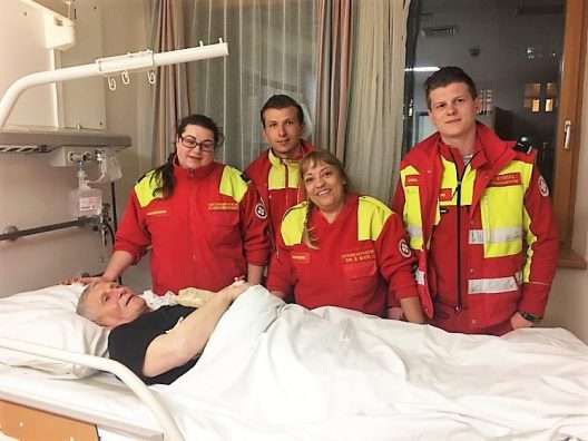 Ekipi shpëtimtar, krahas mjekes edhe tre infermierë, e solli 63 vjeçarin me autoambulancë në spitalin e Linz-it, ku Buck e kishte rezervuar një shtrat për të sëmurin. Kjo ka ndodhur pikërisht në ditën e ringjalljes së Krishtit, shkruan gazeta austriake.