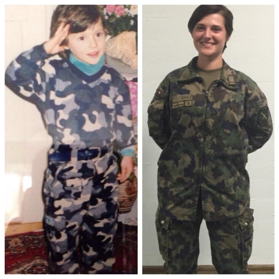 Erleta Shala: Ka disa arsye. Njëra është sepse Zvicra ka bërë shumë për ne dhe e pyes veten disa herë se ku do të isha sot po të mos kishim pasur mbështetjen e shtetit zvicerian. Prandaj dëshira ime ka qenë të falënderohem me shërbimin në ushtrinë zvicerane. Tjetra arsye është sepse si e vogël jam veshur dhe kam ëndërruar të jem ushtarake. Jam inspiruar dhe nga lufta e Kosovës, ku si fëmijë kam ndier vuajtjet e gjeneratës sime atje.