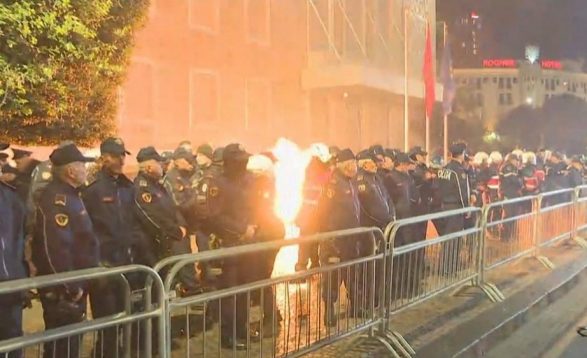 Policia e Shqipërisë raportohet të ketë shoqëruar disa nga protestuesit opozitarë në Tiranë, të cilët gjuajtën me molotovë ndërtesën e Kryeministrisë.