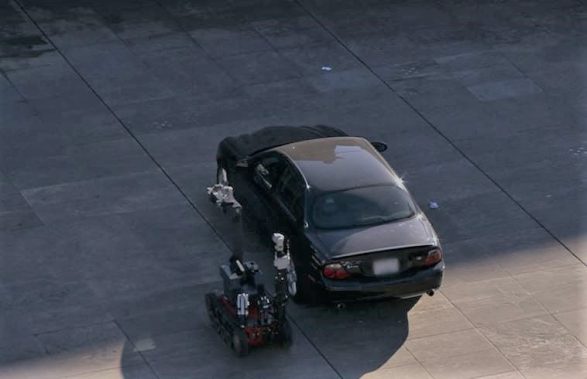 Një robot për neutralizim bombash është futur në përdorim. Ai po ekzaminon një makinë të zezë të parkuar në Bundesplatz