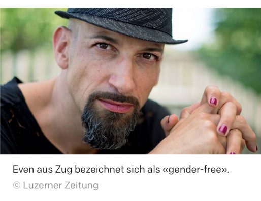 Ekzistojnë forma shumë të ndryshme të identitetit gjinor jo-binar. Eveni e përshkruan veten si “pa gjini”, duke u dalluar në mënyrë eksplicite nga kategoritë gjinore të njohura. EVeni përjetoi një fazë të “gjëndrave fluide” me një ndjenjë të qetë të seksualitetit. Ndonjëherë kishte ndodhur që Eveni në mëngjes të dilte jashtë shtëpisë me ndjenjën se ishte më shumë një grua sesa një burrë dhe gjatë mëgjesit gjithçka “përmbysej”. Në moshën 45-vjeçare, Eveni e ka gjetur rrugën e tij. Në faqen e internetit të kompanisë për konsultime të sigurimeve matematikore, e cila madje u themelua shtatë vjet më parë në Zug, ekziston kërkesa për një përshëndetje pa gjini. “Nëse unë jam i shkruar me `I dashuri Even`, atëherë unë nuk do ta korrigjoj atë person”. Si klient, Eveni është shumë këmbëngulës. Por për shkak se as banka, as ofruesi i telekomunikacionit ose SBB nuk njohin një përshëndetje gjinore, madje merr formën femërore: “Zonja Meier ndihet më pak e gabuar sesa zotëri Meier”.