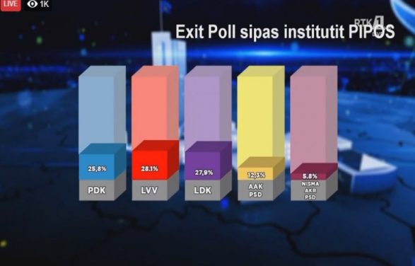 RTK dhe Instituti i Prishtinës për Studime të Opinionit Publik, PIPOS, sapo kanë publikuar Exit Poll-in për epilogun e zgjedhjeve të parakohshme të mbajtura sot për Kuvendin e Republikës së Kosovës.