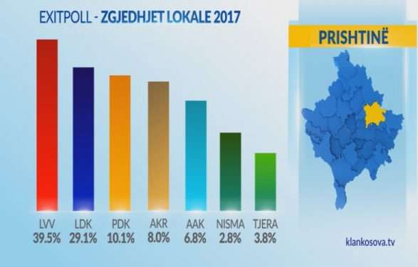 Sipas Exit Poll-it Komuna e Prizrenit do të shkojë në balotazh. Balotazhi do të jetë mes PDK-së dhe Lëvizjes Vetëvendosje.