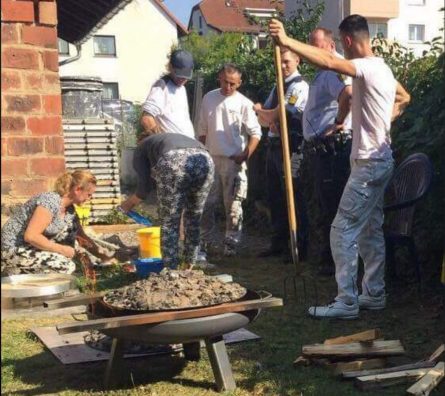Megjithatë, fqinjët e tyre gjermanë, duke parë tymin e madh që ishte duke dalë në oborr dhe duke mos pasur njohuri për përgatitjen e flisë, thërrasin policinë për të shkuar në vendin e ngjarjes, transmeton albinfo.ch. një lajm me fotografi që po qarkullon ne rrjetet sociale.