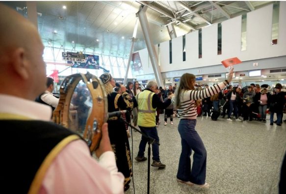 Festa e 28 Nëntorit në aeroportin e Tiranës, muzikë e këngë popullore