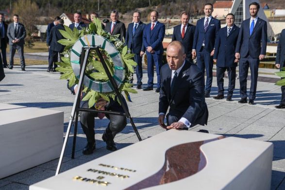 Në 11-vjetorin e Pavarësisë së Kosovë, presidenti i Kosovës, Hashim Thaçi, i shoqëruar nga kryeministri Ramush Haradinaj dhe gjithë kabineti qeveritar kanë bërë homazhe dhe kanë vendosur kurora lulesh tek kompleksi memorial “Adem Jashari” në Prekaz.