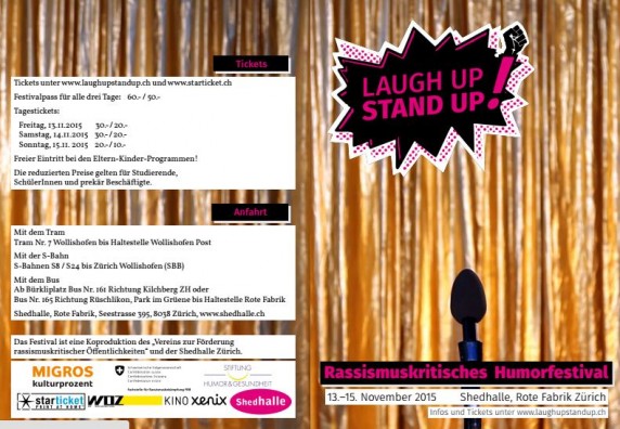 Më 13, 14 e 15 nëntor mbahet në Cyrih festivali humoristik «Laugh up stand up» që merret me stereotipat për të huajt dhe racizmin. Siç bën të ditur studiuesja Shpresa Jashari, ky festival i llojit të veçantë organizohet nga një grup i vogël aktivistësh/studiuesish.