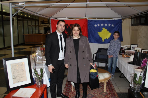 Stenda shqiptare, me flamurin kombëtar dhe atë të Kosovës