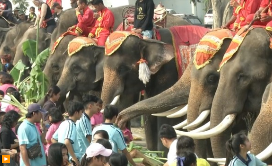 Në qytetin e lashtë tajlandez, Ajutahaja, rreth 70 elefantë janë gostitur me fruta për të kremtuar kështu Ditën e Elefantëve, ngjarje kjo me ç’rast të rritur e fëmijë kanë mundësi të ushqejnë gjigantët miqësorë.