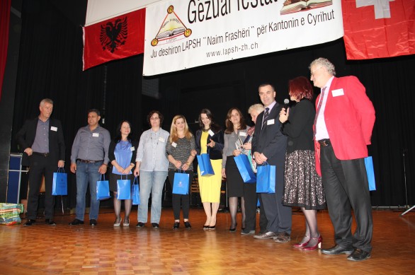 Shukrije Ramadani është përkujdesur në fund t’u ndajë nga një dhuratë mësimdhënësve shqiptarë të Cyrihut që po mbajnë gjallë shkollën shqipe në këtë kanton.