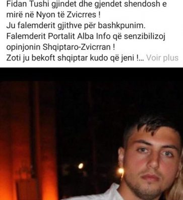 Pasditen e sotme, familjarët e Fidan Tushit, 23 vjeçar nga Tërpeza e Vitisë me qëndrim në Gjenevë kishin njoftuar redaksinë tonë për humbjen e Fidanit. Ai ishte parë për herë të fundit në natën në mes të të mërkurës dhe të enjtes gjegjësisht më 28/29 maj.