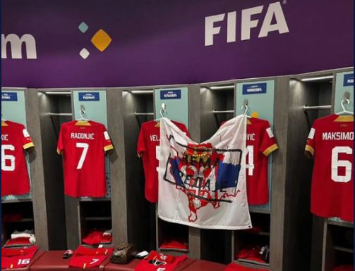 FIFA ka nisur hetimet për flamurin me motiv nacionalist nga kabina e lojtarëve të Serbisë në Botërorin që po zhvillohet në Katar. Ai flamur paraqet hartën e Kosovës nën ngjyrat kombëtare serbe, transmeton albinfo.ch. Fotoja me sa duket është bërë në dhomën e zhveshjes para ndeshjes së Serbisë kundër Brazilit.