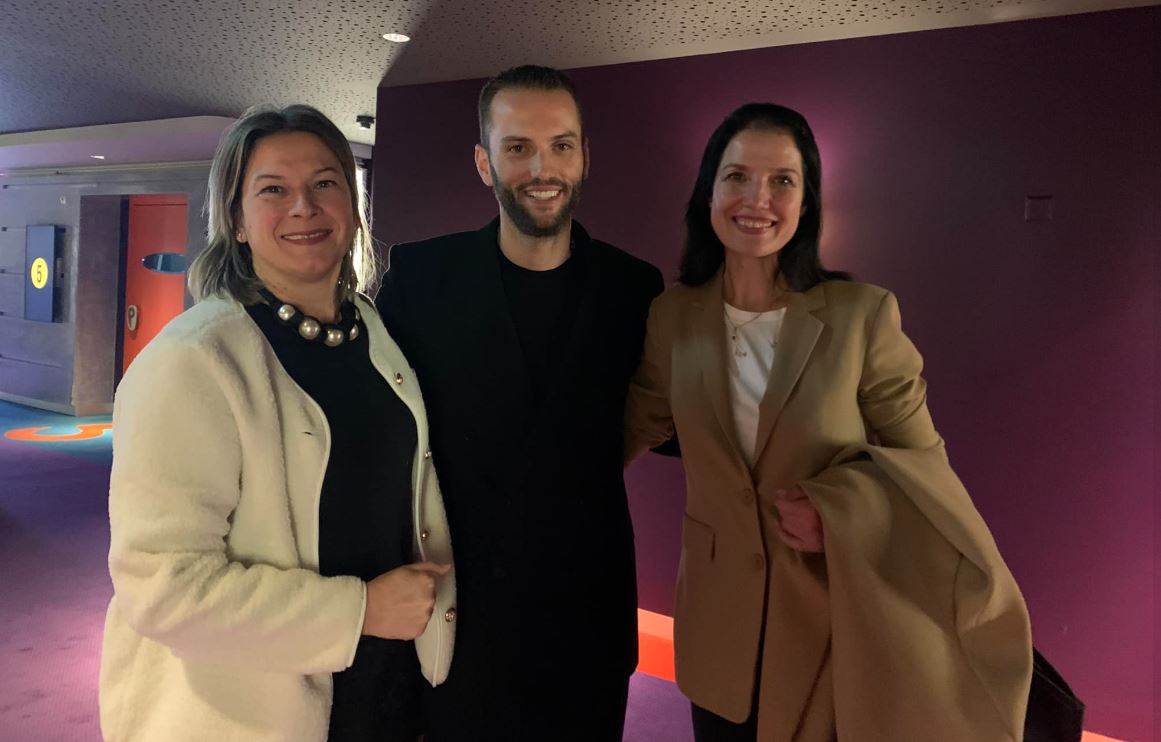 Gazetarja, Brikela Andrea-Nune, regjisori Eduard Grishaj dhe Monika Zguro, Këshilltare në Ambasadën e Shqipërisë, në Bernë