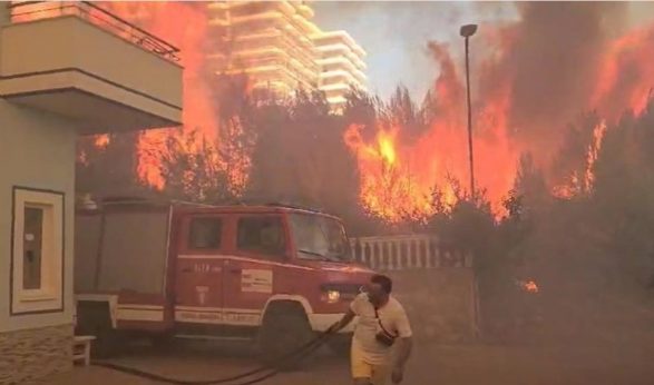 Situata u përkeqësua ditën e sotme nga erërat e forta, të cilat përhapën zjarrin afër banesave. Deri më tani raportohet për një banesë, një “beach bar” dhe disa çadra e shezllone të djegura, shkruan TopChannel.
