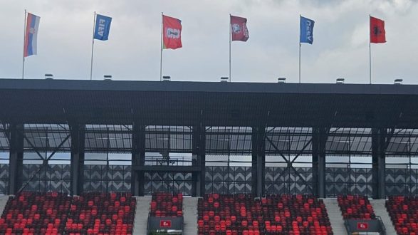 Flamuri kuqezi në stadiumin ku do të luhet ndeshja Shqipëri-Serbi