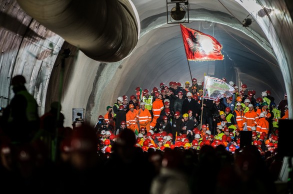 Flamuri shqiptar është mbajtur lartë në mesin e punëtorëve të cilët kanë festuar sot hapjen e krahut perëndimor të tunelit të bazik Ceneri, që është 700 metra nga portali verior në Zvicër