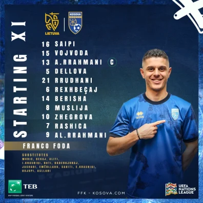 Trajneri i Kosovës, Franco Foda, e ka publikuar 11-shen startuese për ndeshjen ndaj Lituanisë, e vlefshme për Ligën e Kombeve. Ndeshja do të zhvillohet në Kaunas, nga ora 15:00.
