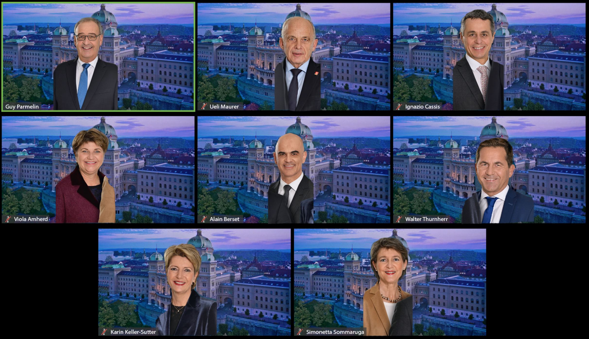 Guy Parmelin, i cili është zgjedhur tashmë si “i pari në mes të të parëve” për vitin 2021, thotë: “Është e rëndësishme për mua që në këto kohë të vështira t`i shikojmë së bashku dhe në mënyrë të paanshme ato që duken të paluajtshme. Në këtë mënyrë ne po japim një kontribut konkret në kohezionin e vendit tonë”, citohet ai në komunikatën zyrtare me rastin e publikimit të fotografisë për vitin 2021.