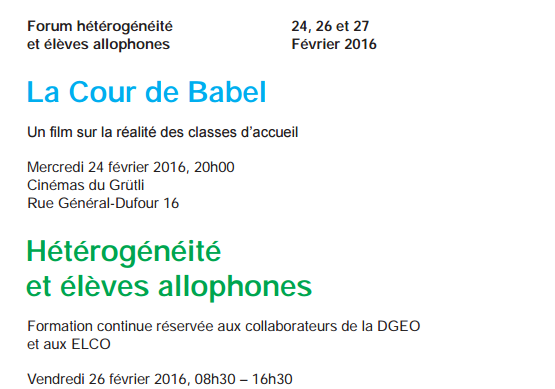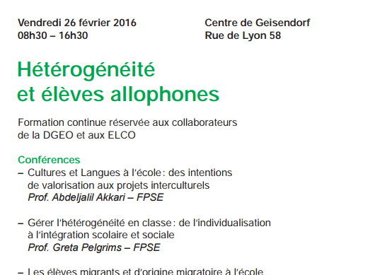 Le forum “hétérogénéité et élèves allophones” est le fruit d’un travail de collaboration entre le département de l’instruction publique (DIP), le bureau de l’intégration des étrangers (BIE) et plusieurs associations partenaires.