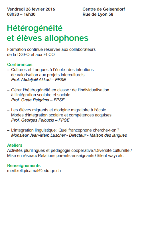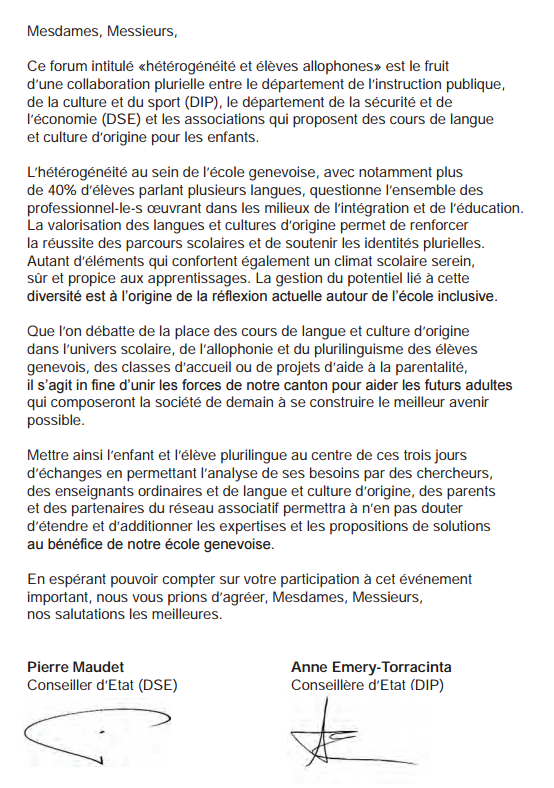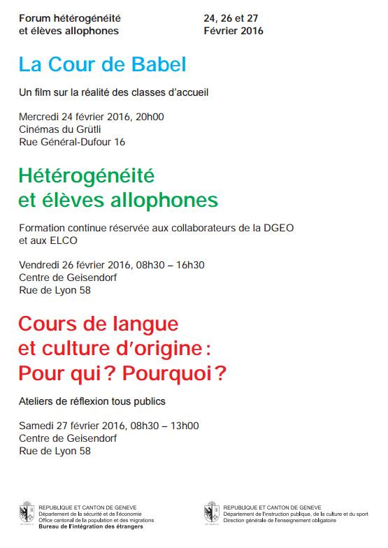 Le forum “hétérogénéité et élèves allophones” est le fruit d’un travail de collaboration entre le département de l’instruction publique (DIP), le bureau de l’intégration des étrangers (BIE) et plusieurs associations partenaires.