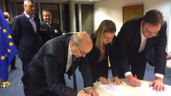 Au terme d’une série de négociations ardues à Bruxelles, les deux premiers ministres, Isa Mustafa et Aleksandar Vucic ont signé un accord sur le paquet comprenant quatre accords distincts portant sur l’Association des municipalités serbes, le Telecom, l’énergie, et la suppression de la barrière sur la rivière Ibar.