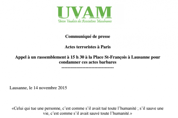 L’UVAM appelle à un rassemblement pour condamner le terrorisme