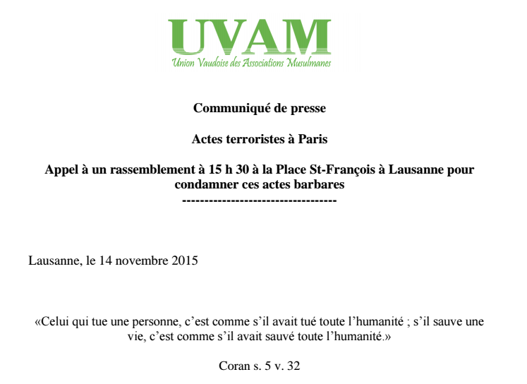 L’UVAM appelle à un rassemblement pour condamner le terrorisme