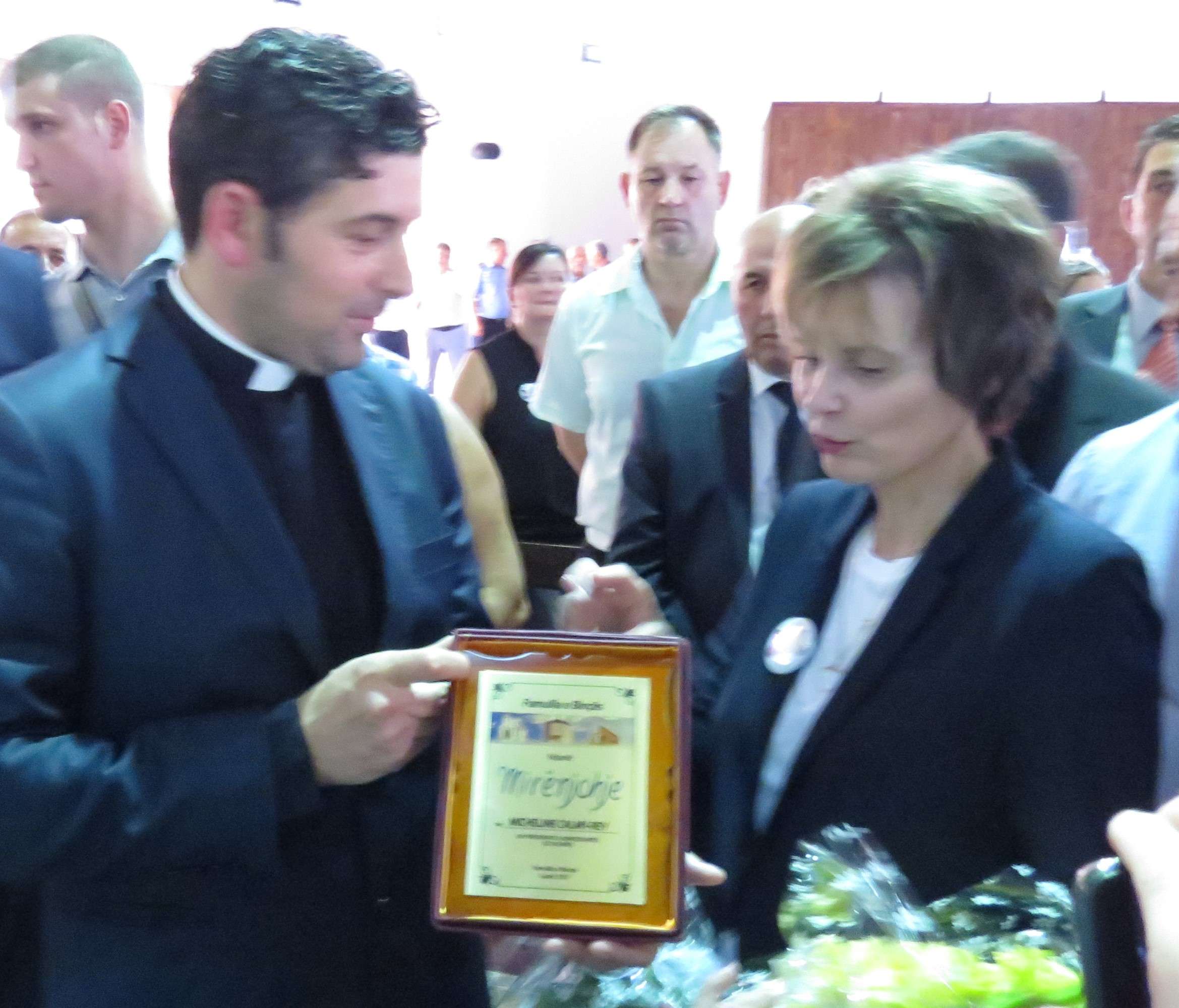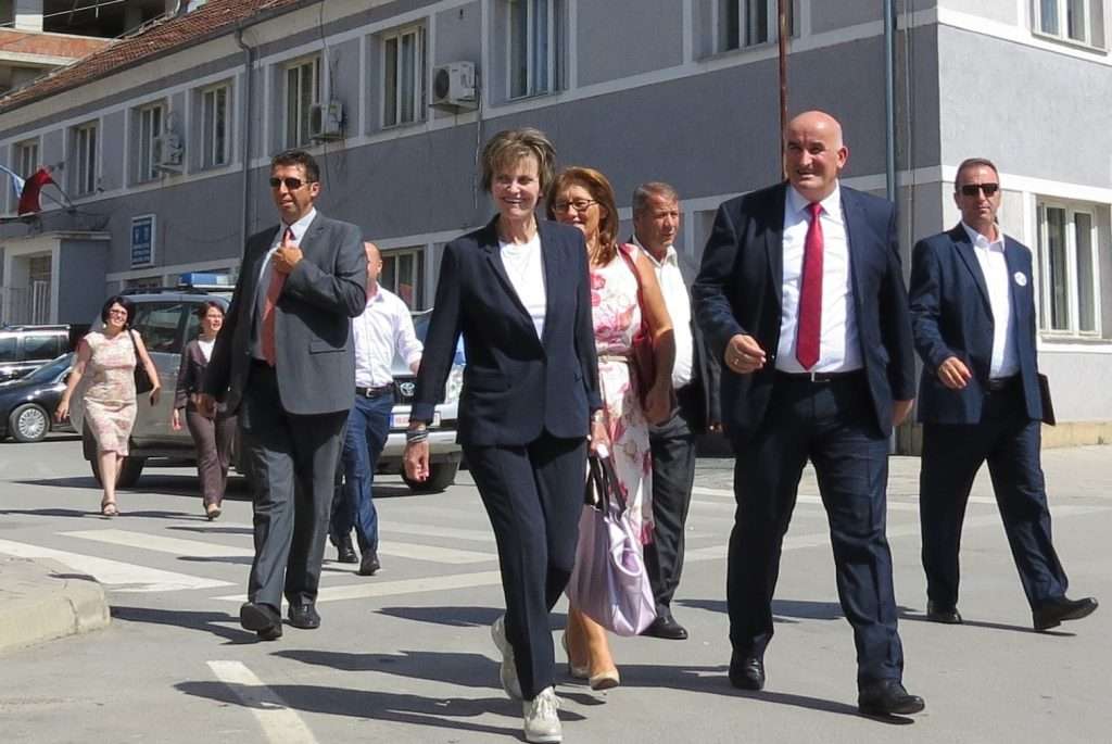 Lors de la visite du maire de la commune de Viti, M. Haliti, Mme Micheline Calmy-Rey a reçu une reconnaissance pour toutes ses contributions au Kosovo. Par la suite, c’est tous ensemble qu’ils se sont rendus à la salle de l’Assemblée, à la Maison de la Culture « Gursel et Bajram Sulejmani », où les jeunes habitants de la ville de Viti l’ont accueillie avec des bouquets de fleurs et des drapeaux suisses.