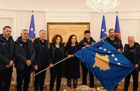 La présidente Vjosa Osmani remet le drapeau olympique aux sportifs kosovars