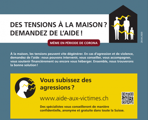 Les restrictions de la liberté de mouvement pour lutter contre la pandémie de coronavirus peuvent entraîner une augmentation des agressions et empêcher les victimes de violence domestique de se faire aider. Pour que toutes les personnes concernées sachent où trouver de l’aide, la task force contre la violence domestique de la Confédération et des cantons lance une action d’affichage. Les associations professionnelles des pharmacies, des drogueries, des boulangeries et des confiseries sont les premières à soutenir cette initiative.