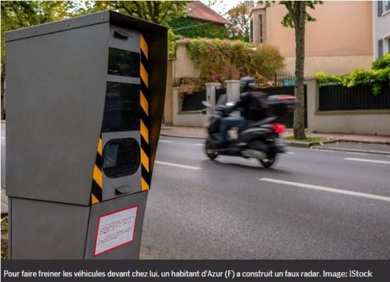Në Francë, ligji nuk ndalon instalimin e një radari fiktiv në një pronë private. Nga ana tjetër, përgjegjësia penale e pronarit të saj është e theksuar qartë, në rast të ndonjë aksidenti të shkaktuar nga aparatura e rreme.