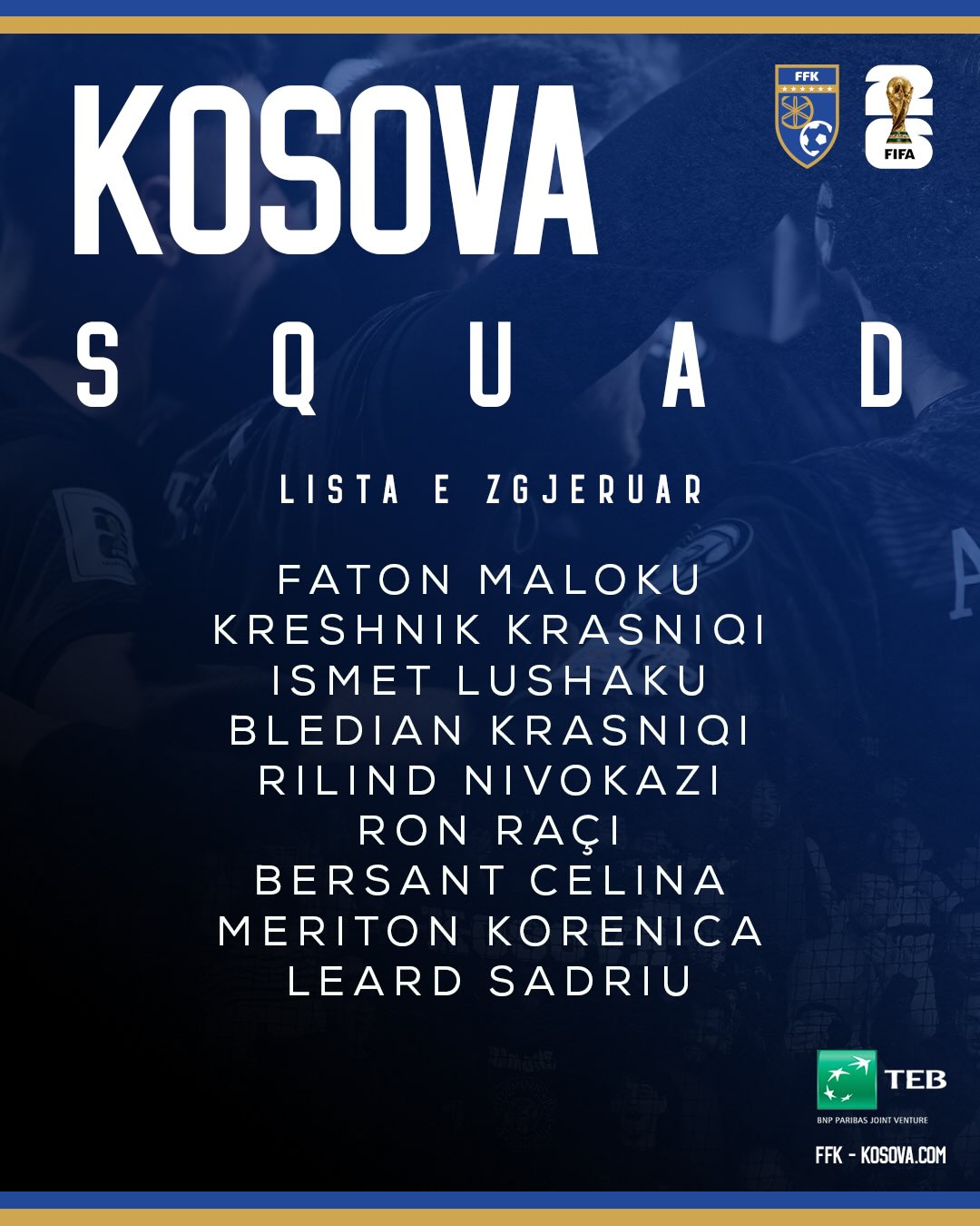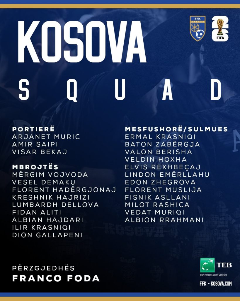 Përzgjedhësi i Kosovës në futboll, Franco Foda, ka shpallur sot listën për ndeshjet e plejofit për kualifikim në Botërorin e vitit 2026.