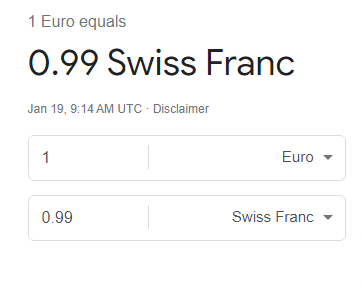 Para pak muajve, monedha e 1 euros ra në 0.95305 franga, ndërsa sot 1 euro është e barabartë me 0.99 franga (apo 1 frang). /Albinfo.ch
