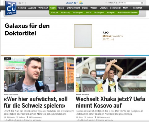Lajmi i anëtarësimit të Kosovës në UEFA nuk është pritur mirë jo vetëm në Serbi, por edhe në Zvicër. “Blick” hapet në versionin e vet online me titullin: “Kosova në UEFA, po Xhaka dhe Shaqiri, çfarë do të bëjnë tani?”, shkruan ajo, duke theksuar edhe njëherë frikën e shprehur edhe nga përfaqësuesi helvet në Kongresin e UEFA-s për të ardhmen e lojtarëve që kanë lindur në Kosovë.
