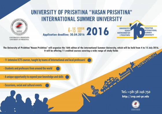 Universiteti i Prishtinës “Hasan Prishtina”, për të 16 –in vit organizon Universitetin Ndërkombëtar Veror, i cili do të mbahet nga data 4 deri më 15 korrik 2016.