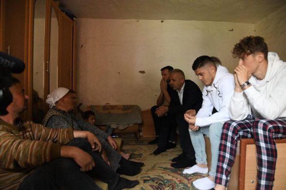 Kapiteni Samir Ujkani, Milot Rashica dhe Mërgim Vojvoda, së bashku me ndihmëstrajnerin Muharrem Saiti dhe humanistin Halil Kastrati, ishin mysafirë te shtëpia e rrënuar e tyre dhe ua dhanë lajmin e gëzueshëm.