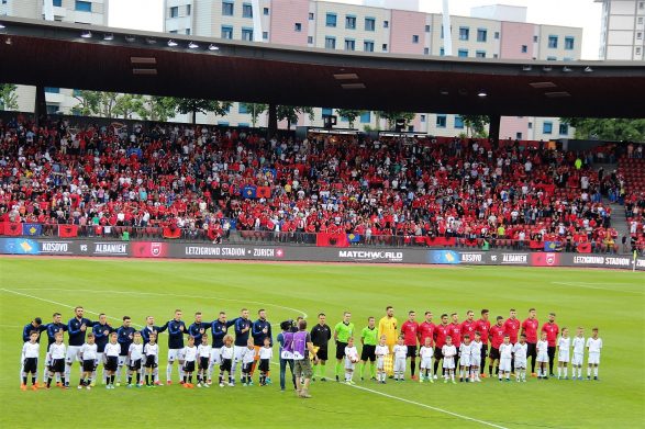 Por, para ndeshjes derisa po intonohej himni kombëtar, përveç lojtarëve të Kombëtares shqiptare, atë e kënduan edhe futbollistët e Kosovës, shkruan albinfo.ch.