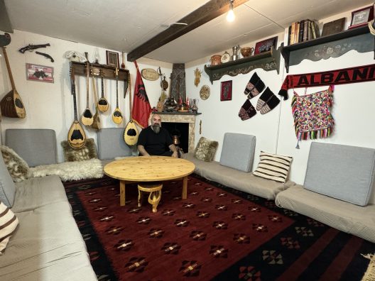 Oda shqiptare për pritje të klientëve, në mes të garazhit Auto Pollog