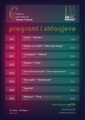 Në natën e fundit të festivalit, më 06 dhjetor 2018, do të jepet premierë shfaqja “Bretkosa”, një prodhim i Teatrit AAB “Faruk Begolli”, në cilësinë e shfaqjes mysafire, jashtë programit garues. Festivali “Prishtina International Theater Festival” është një mundësi e mirë për të parë dhe shijuar gjëra të bukura që ndodhin edhe në Kosovë.