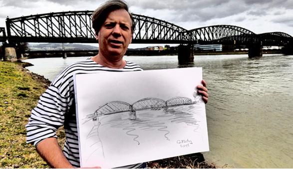 Në vazhdën e pikturave të tij interesante, piktori ynë së fundmi në kuadrin e ciklit të punimeve të tij "Eisenbahnbrücken Zyklus", (Cikli i urave hekurudhore) ka pikturuar një urë në Linz