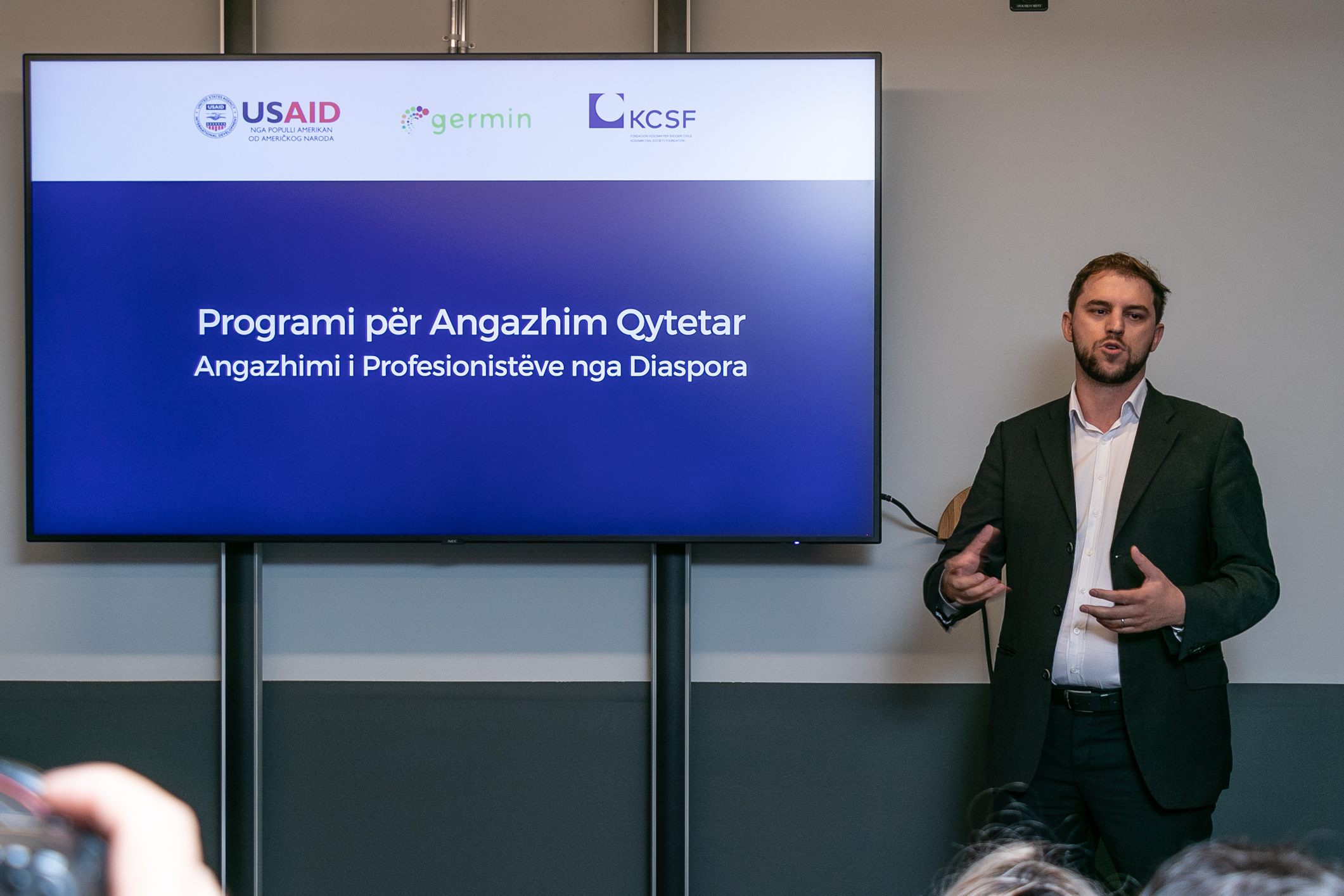 Programi për Angazhimin e Profesionistëve nga Diaspora është prezantuar nga Lirim Krasniqi, bashkëdrejtues ekzekutiv i GERMIN, i cili ka shpalosur para të pranishmëve mundësitë që ofron ky projekt. Ai ka thënë se “ky program synon të angazhojë edhe diasporën apo kapitalin human që ndodhet në diasporë për t’u shërbyer objektivave zhvillimore të shtetit të Kosovës”. Tutje z.Krasniqi ka vlerësuar se “diaspora ka një potencial të jashtëzakonshëm, e që sipas tij, ky potencial është shumë i gatshëm për t’u angazhuar në Kosovë”.