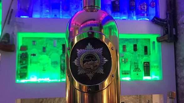 Shishja, e bërë nga ari dhe argjendi si dhe me pjesë diamanti, ishte e huazuar në një bari në Kopenhagë, i cili ka një koleksion të vodkave