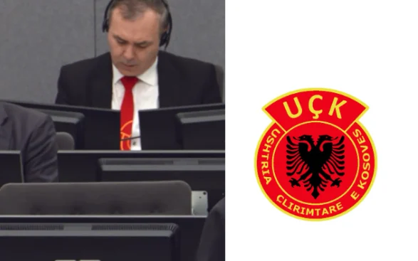 Ish-eprori i UÇK-së, Rexhep Selimi, në seancën e sotme e cila po mbahet në Hagë, është shfaqur me emblemën e UÇK-së në kollaren e tij.