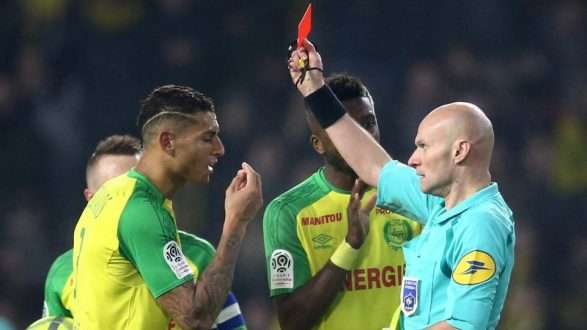 Në ndeshjen Nantes-PSG, gjyqtari i ndeshjes ndëshkoi një nga mbrojtësit e vendasve pasi ky i fundit e pengoi pa dashje kur po vraponte.