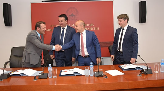Kjo marrëveshje është nënshkruar nga ministri i Financave Dragan Tevdovski dhe ai i Transportit dhe Lidhjeve Goran Sugareskim, drejtori i NP Higjiena në Gostivar Isak Lazami dhe përfaqësueses seë bankës KFV, e cila është administratore e mjeteve grantit, Rene Eskeman.